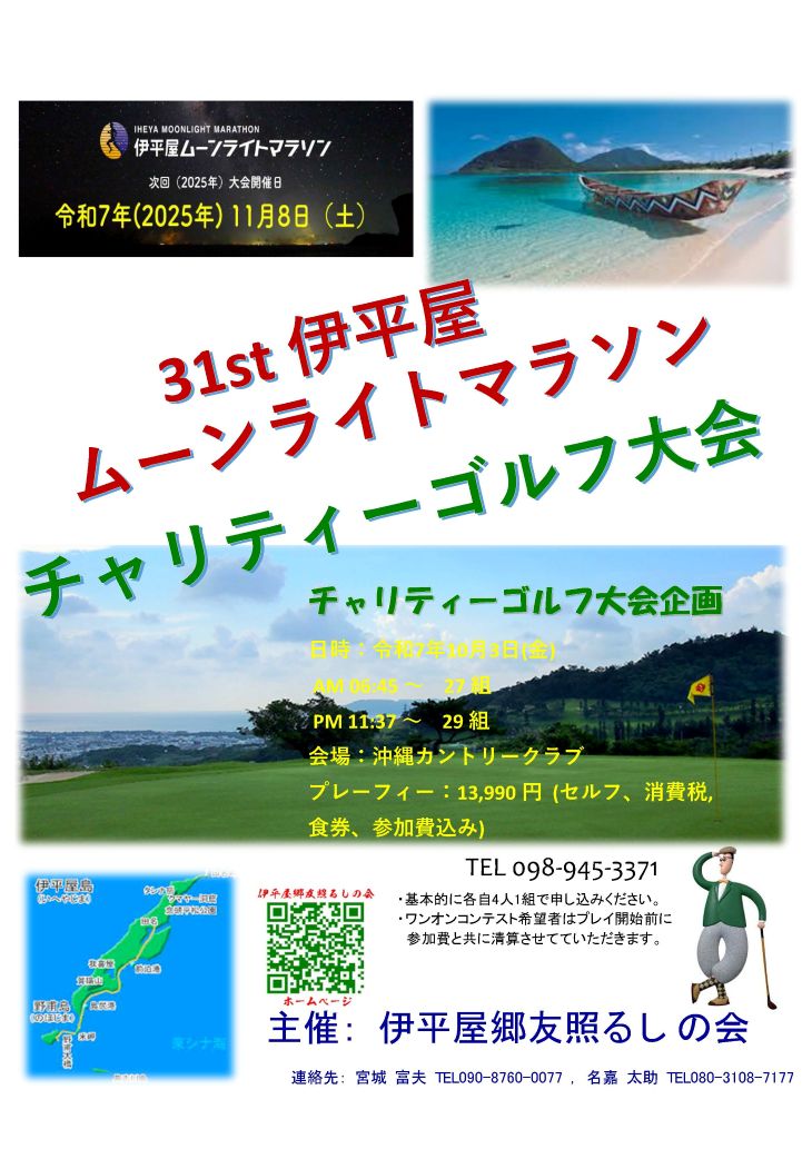 31st伊平屋ムーンライトマラソン支援チャリティーゴルフ大会 2025/10/3(金)開催予定、案内ポスター、 趣意書、大会要綱 |